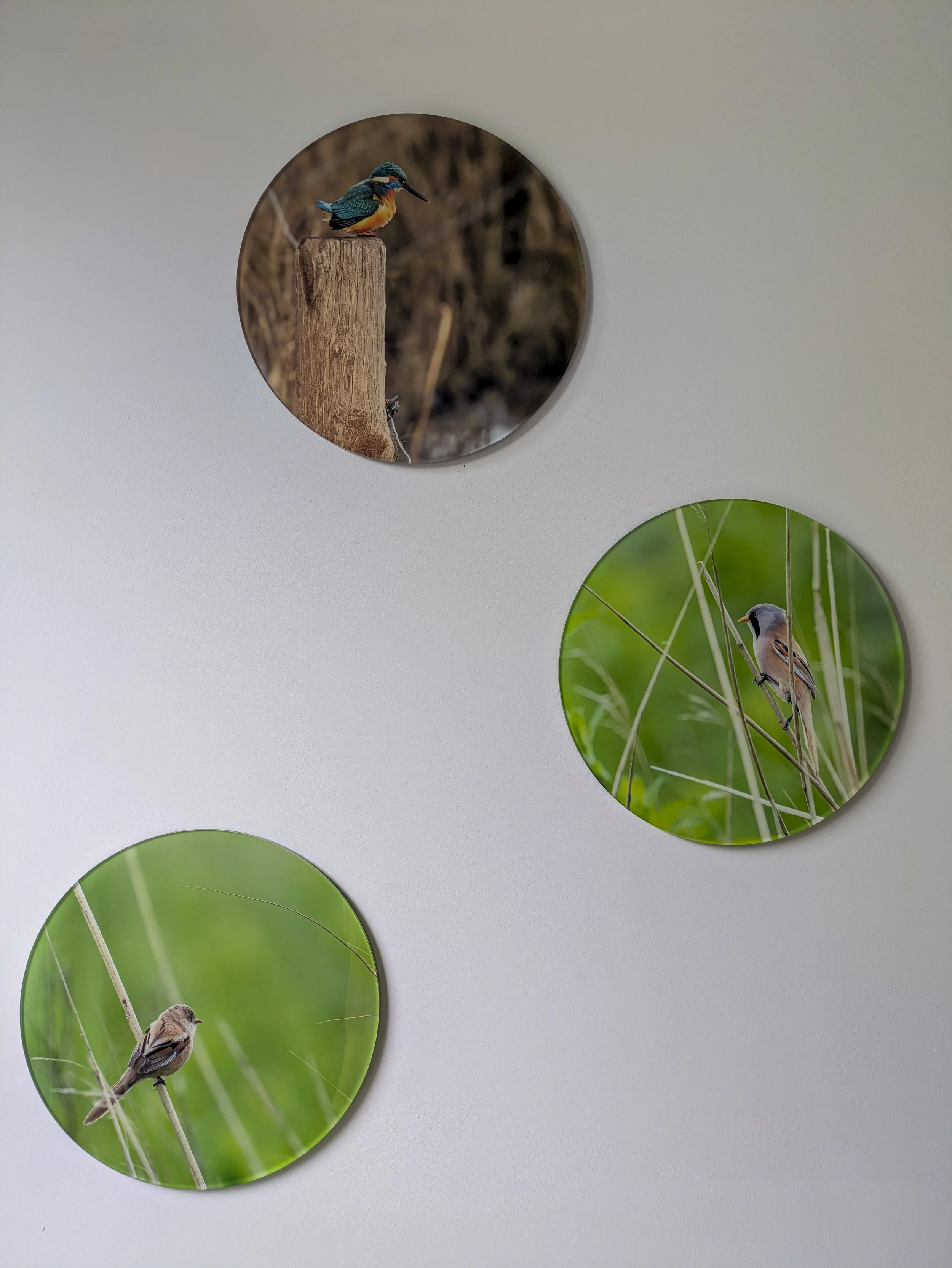 Foto’s afgedrukt op plexiglas hebben een heldere uitstraling. De ronde vorm geeft speelsheid en waardoor je makkelijk kan combineren.